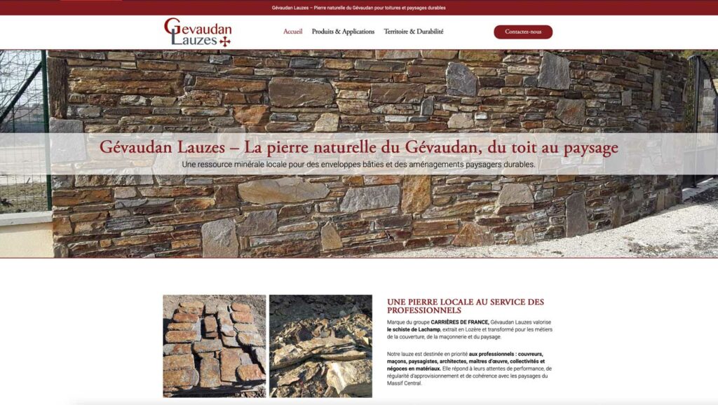 Le site a été structuré autour des besoins principaux des cibles : maîtres d’ouvrage publics ou privés, architectes et artisans du patrimoine, entreprises du bâtiment et paysagistes, particuliers souhaitant construire ou rénover avec des matériaux locaux.